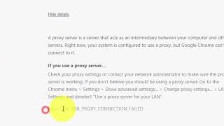 This video shows you how to fix the Unable to Connect to Proxy Server error in Google Chrome. If the suggested technique didn't work, you should check your firewall and Antivirus settings...